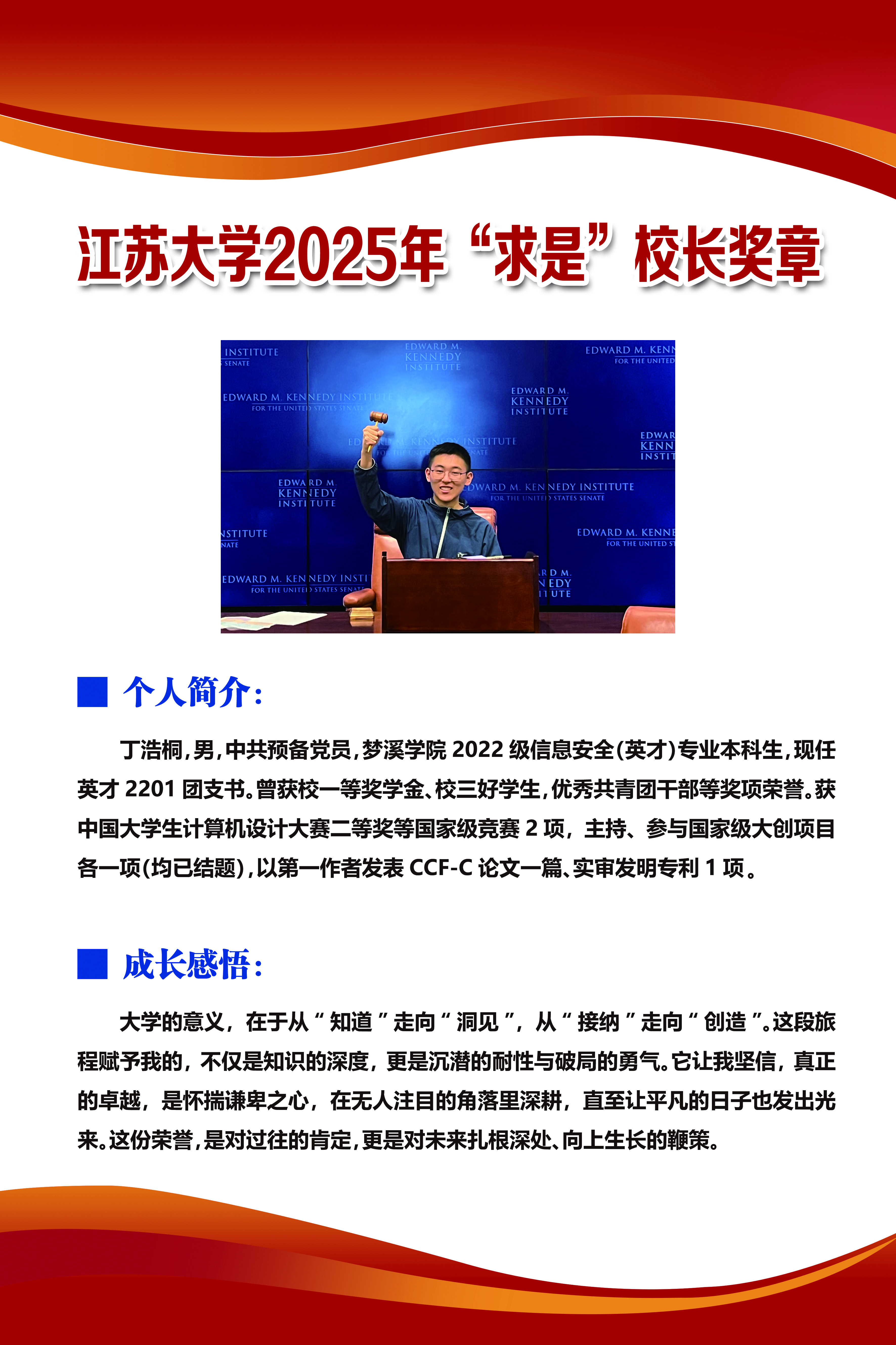 江苏大学2025年“求是”校长奖章——丁浩桐